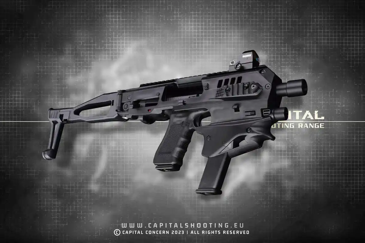 Můžete vyzkoušet Glock CAA MCK 9×19, populární taktický doplněk často viděný ve filmech, který přemění ruční zbraň na vysoce stabilní zbraň ve stylu karabiny.
